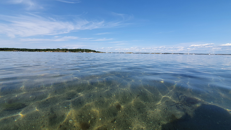 Jag och mina vänner promenerade sedan längs en naturstig från Ekenäs ner mot Kilesand. Vid Kilesand hann vi med ett till dopp i det blå. Något man ska ha i beaktande är att även om en strandbotten är väldigt fin så finns där ett antal snäckor och musslor med mera. Det gör att badskor kan vara att föredra – om man inte som vi ville ha ordentlig massage under fötterna. 😉