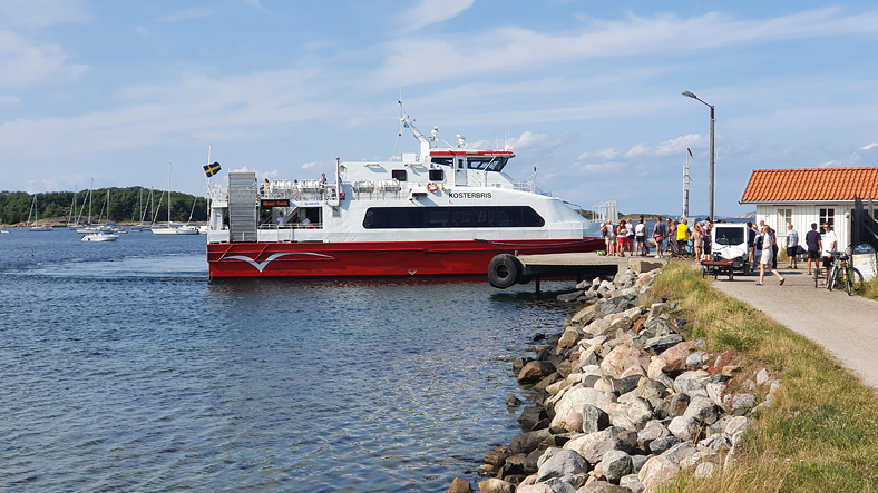 Vi kom att avresa från Norra Hamnen med den stora Kosterbris. Koster Marin AB är rederiet som driver trafiken ut till Kosteröarna, på uppdrag av Västtrafik. Katamaraner är båttypen som används för passagerartrafiken, och alla har då Koster i främre delen av fartygsnamnet. Kostersund, Kostervåg, Kosterbris, Kostervind, Kosterfjord…Och hur mycket ”kostar” det då att åka till Koster? En tur och returbiljett går på 136 kronor.