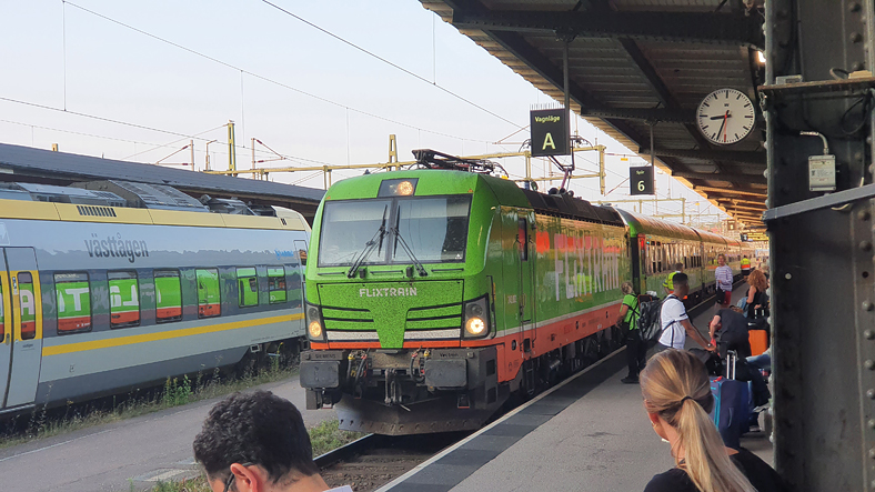Sent omsider, ja väldigt sent omsider, fick vi komma ombord på tåget – då hade klockan slagit 22:30 (!). För det var väl klart att det också skulle bli något strul med loket i samband med rundgången, alltså vid vändning av loket, så allt blev ju ännu mer fördröjt än vad det redan tillräckligt var. Själva resan till Stockholm? Ja inte fanns den rätta stämningen för att vila med tanke på den starka belysning Flixtrains vagnar gav…