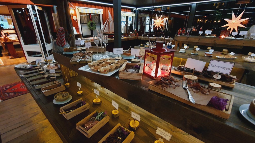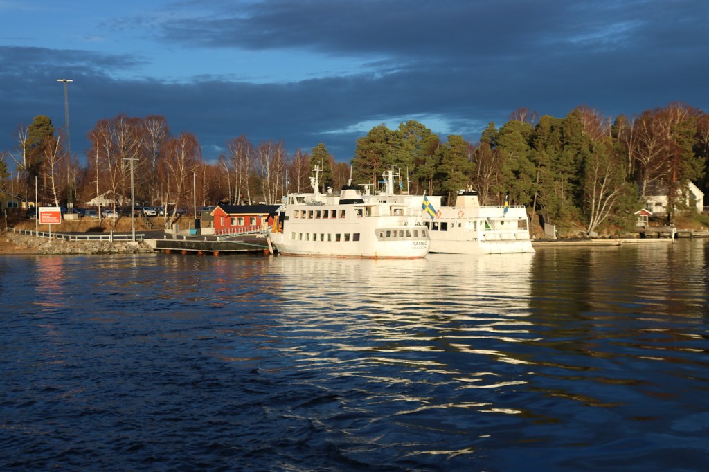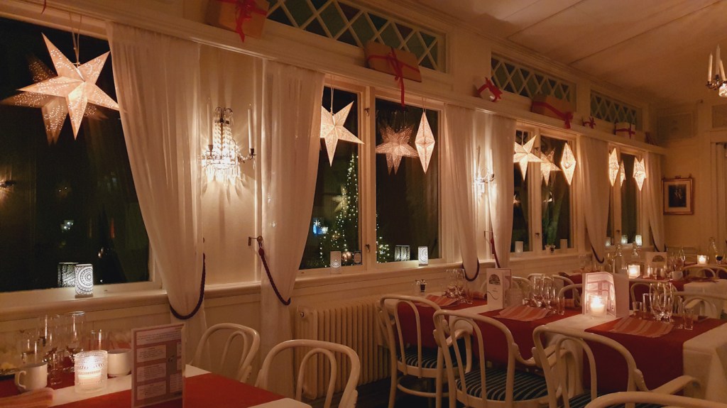 Båten till Årsta skulle avgå 17:35 ifrån Gruvbryggan, och det var väl den negativa del med att välja sittning klockan 15:15 – för med så mycket gott som det fanns på värdshusets julbord så blev det många portioner, och de som känner mig vet att jag inte äter fort… 😉 Så det blev till att direkt efter varje tömd tallrik gå och ta mer så att säga.