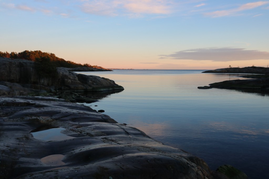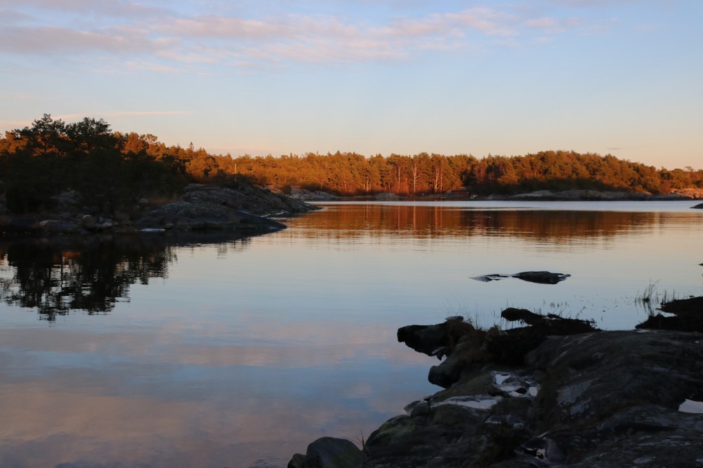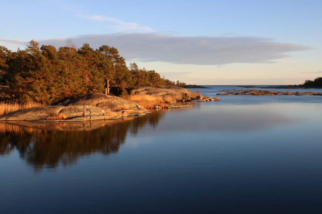 Sent solljus på klippor i vacker arkipelag – svårslaget!