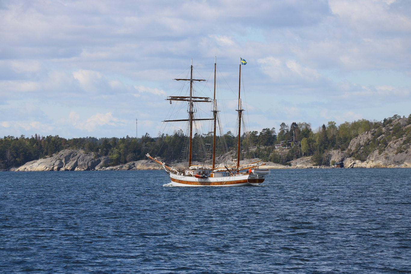 Ibland när man är ute på vissa utfärder så får man plötsligt se vissa fartyg som man kanske inte ser jätteofta, men framför allt så får man ibland se fartyg som kanske precis kommit till Stockholm för första gången eller något som lämnar Stockholm för väldigt lång tid eller kanske evigt. Vega Gamleby, skonaren, kom vid detta tillfälle på Nämdöfjärden den 14 maj att ha påbörjat en inte så kort resa – utan fartyget skulle över Atlanten och bli lastfartyg för ekologiskt kaffe. Hon ska sedan segla mellan Colombia och New Jersey, och på så vis blir det ett fossilfritt fraktande.