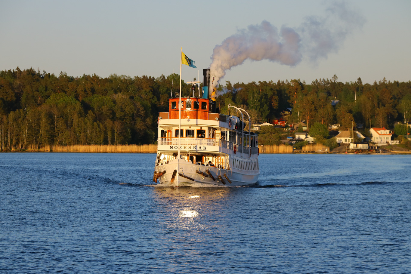 Ångfartyget Norrskär visslar för ankomst Vaxholm på en kvällstur in från Ramsösund den 20 maj. En vackrare syn går nästan inte att få till i kvällsljuset. 20 maj var annars en dag som gick i moll då älskade katten Titus fick somna in, 15 år gammal.