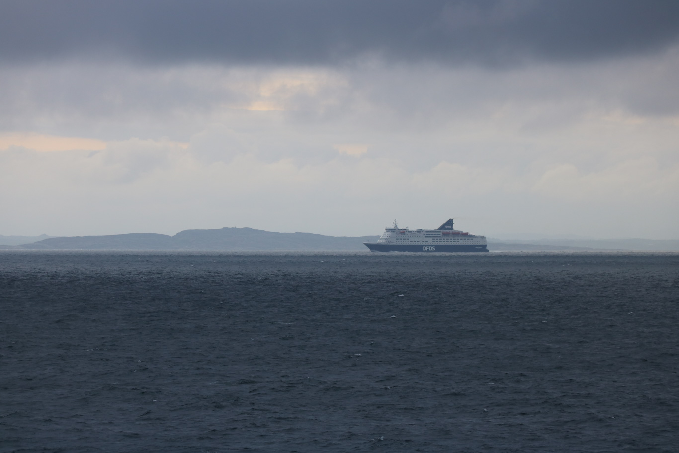 Det ser ut som en Viking eller Tallink-båt, men är DFDS fartyg Crown Seaways på väg mellan Oslo och Köpenhamn. Systerfartygen till denna Crown Seaways är emellertid de i Stockholm väl bekanta fartygen Amorella, Gabriella och Isabelle. Det var en fartygsserie som byggdes under senare 1980-tal och ett par år in på 1990-talet i Kroatien, i Split. Jag åkte över med Color Hybrid från Strömstad till Sandefjord till Norge och tillbaka, varifrån jag tog denna bild den 24 maj.