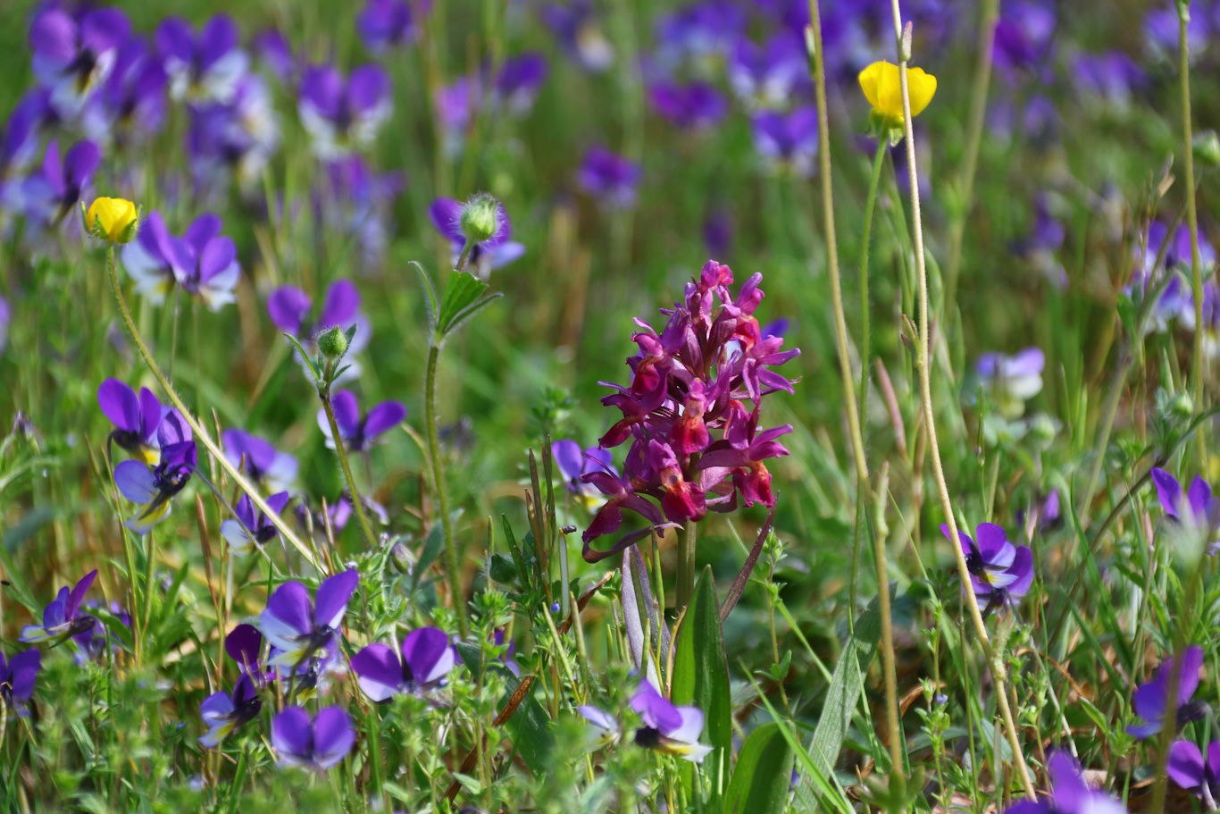 Det var några år sedan jag var i nationalparken Ängsö när orkidén Adam och Eva blommat, men i år kom jag i alla fall ut dit när de var på gång, ja till och med hade slagit ut en hel del. -och när det sker så är det en mäktig syn att se vid Norrängen, samt till detta också styvmorsvioler och mandelblom. Besöket gjordes den 18 maj.