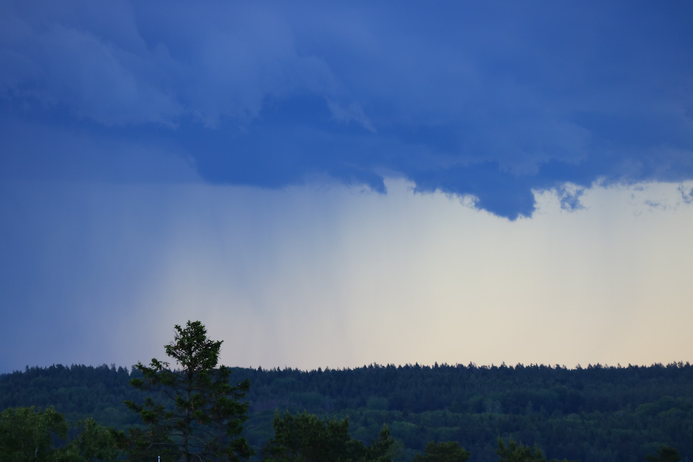 Ostadigt väder skådat från köksfönstret hemma på Näset, Lidingö den 14 juni.