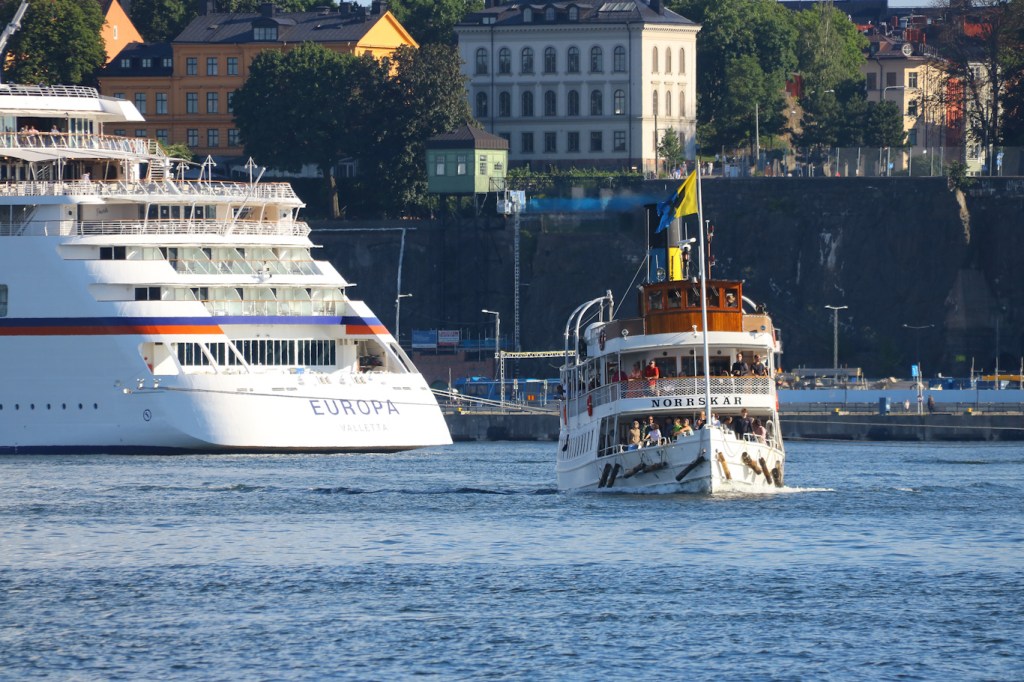 Europa och Viking Star, två kryssningsfartyg i centrala Stockholm denna måndag 8 augusti.