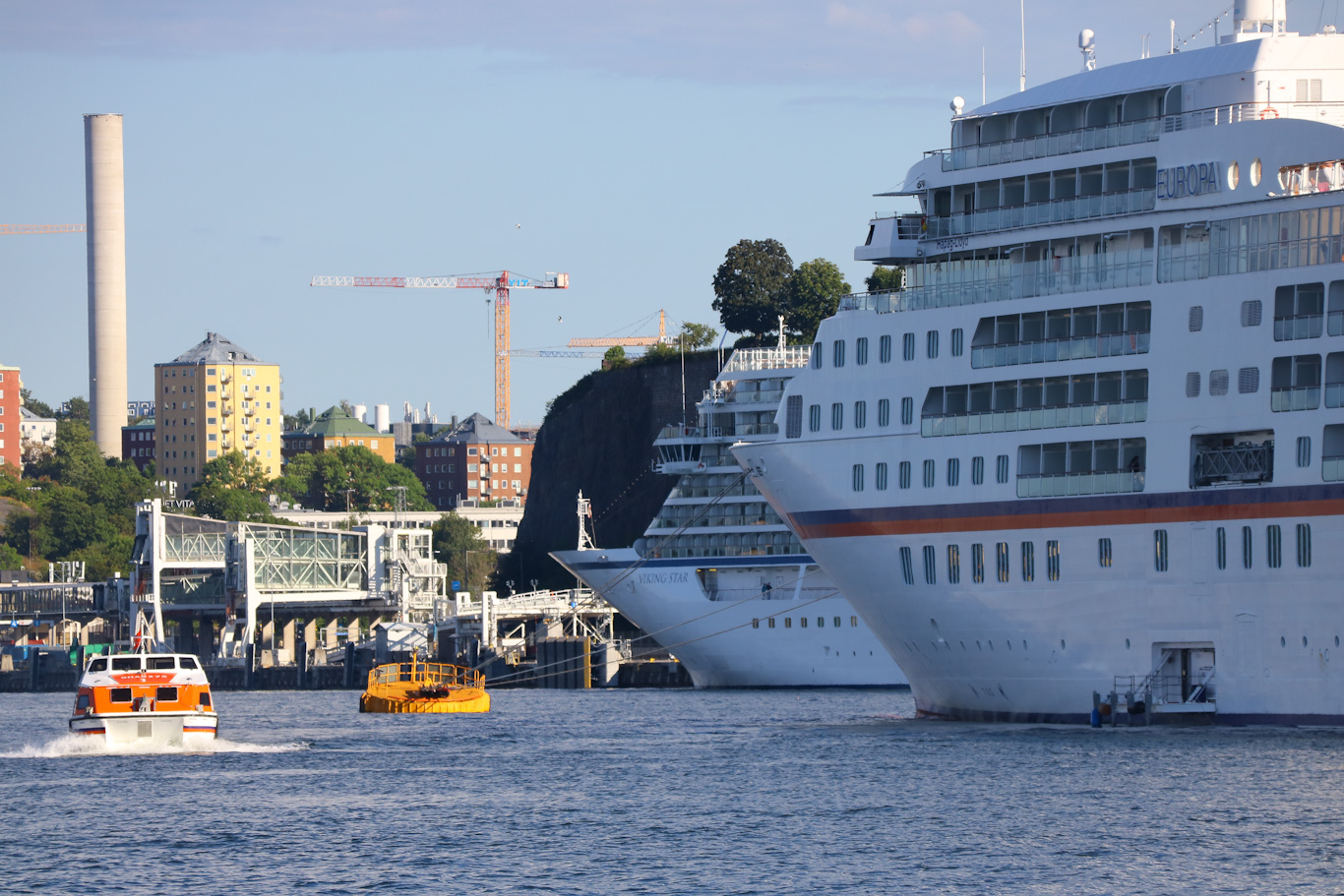 Europa och Viking Star, två kryssningsfartyg i centrala Stockholm denna måndag 8 augusti.