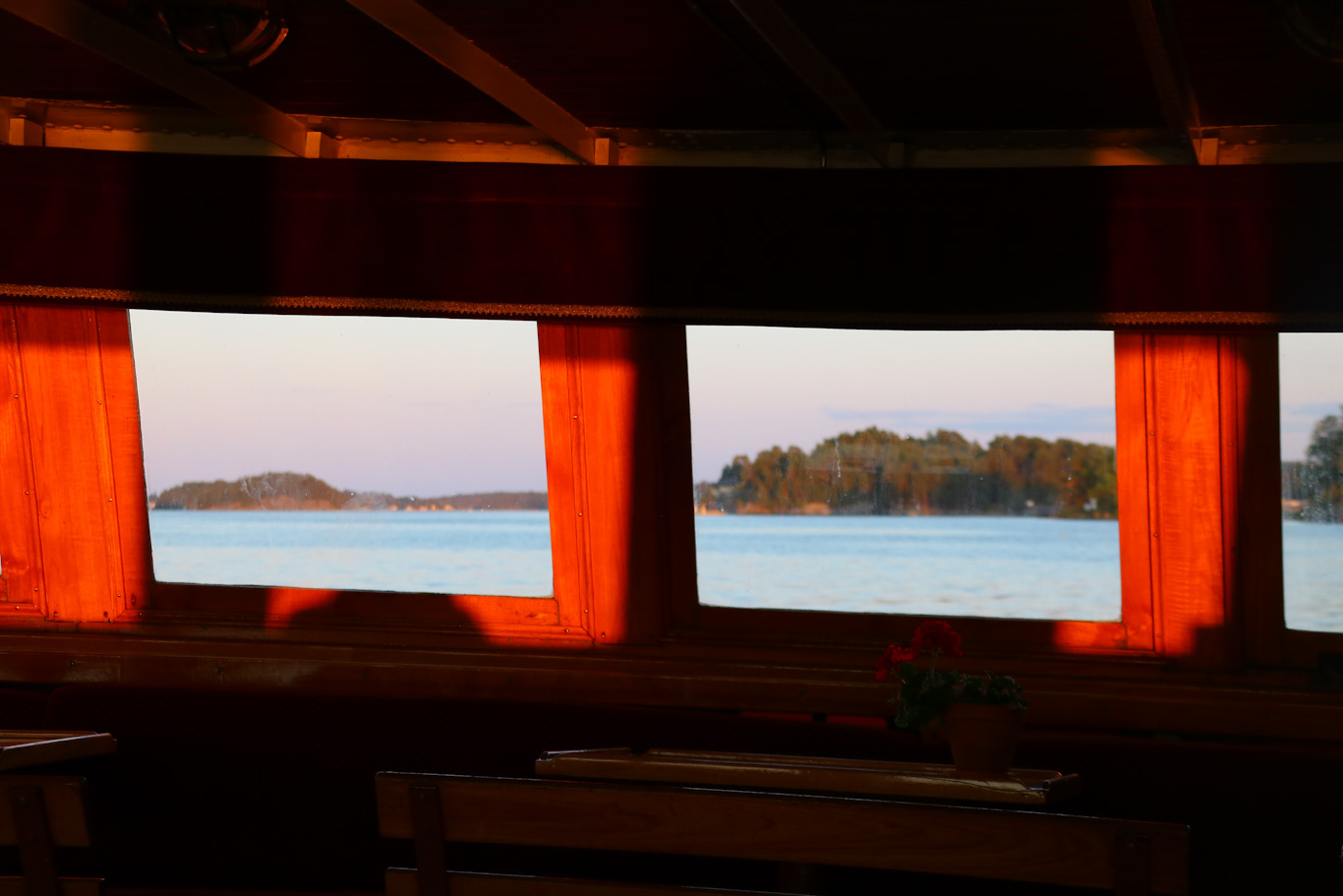 En viss nedförsbacke kan anas i bilden – men det kan kanske symbolisera utvecklingen av Norrskärs kvällsturer från något år innan pandemin till detta år med så att säga normal trafik igen. Nu kör man kvällsturer måndag-fredag en vecka till, sedan onsdag-torsdag under perioden 22 augusti till 18 september. Blidösundsbolaget är det som sköter restaurangen och därmed också bokningarna till den vackra matsalen. Men annars en fin kvällstur att göra oavsett med fyra timmars njutning av vacker ångbåt och vacker innerskärgård. Sensommarkvällar kan vara underbara.
