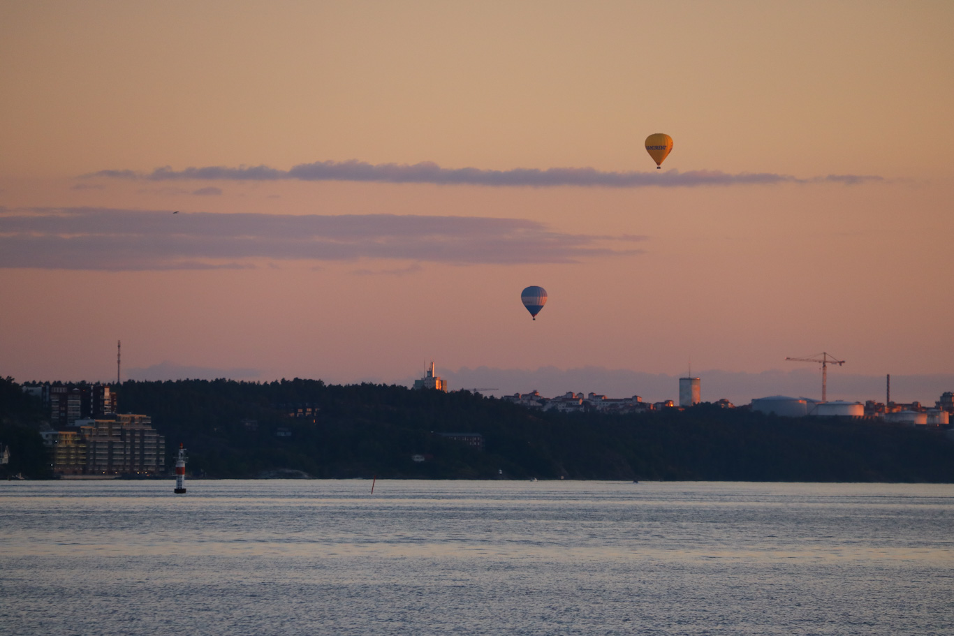 Här svävades det vid moln över Nacka och Jarlaberg. Telegrafbergets nya exploaterade område till vänster i bild.