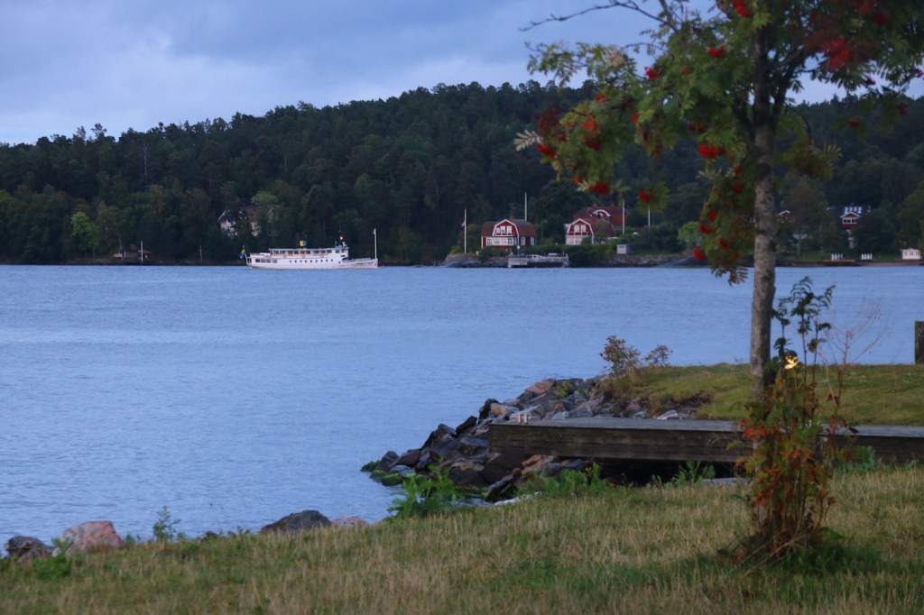 Adjö ångbåtsäsong 2022. Förvisso kör Blidösund sina musikkryssningar ett tag till, samt julbordskryssningar i december. Det är inte omöjligt att det blir någon resa då. Men mina turer med Waxholmsbolagets Storskär och på bilden Norrskär så var det vid Granholmens brygga vid 17-tiden tack och hej för i år. Och tre långa signaler var skepparen generös med! Nu tänker ni kanske ”Granholmen nämnde du ju tidigare vid Möja?” – jo det stämmer, men det finns också en Granholmen sydväst om Vaxholm – en ö med i stort sett bara fastigheter på så inte direkt lika besöksvänlig som Granholmen vid Möja, men med en ångbåtsbrygga som Norrskär flitigt använder under säsongerna.