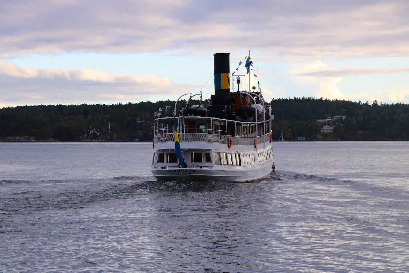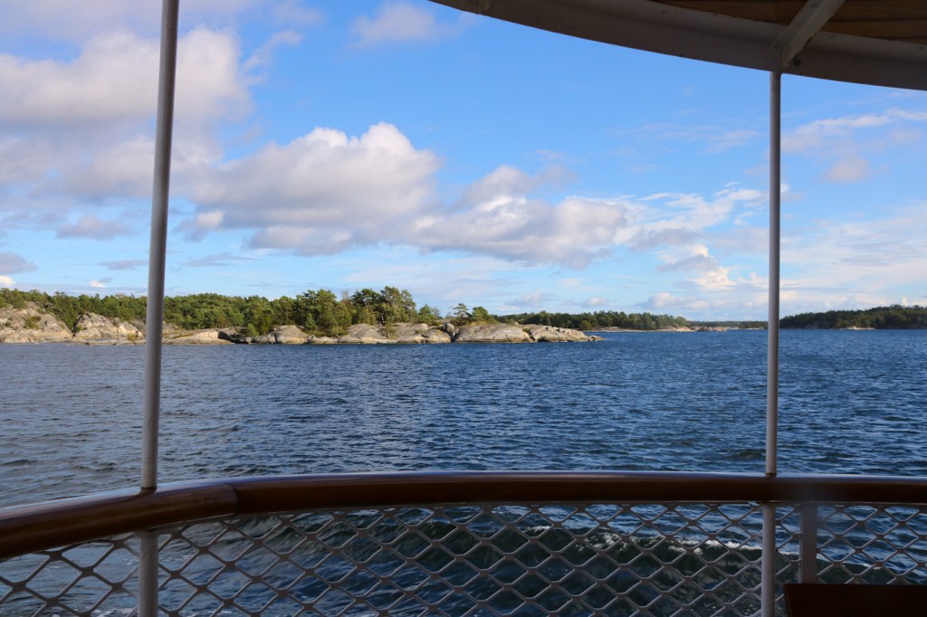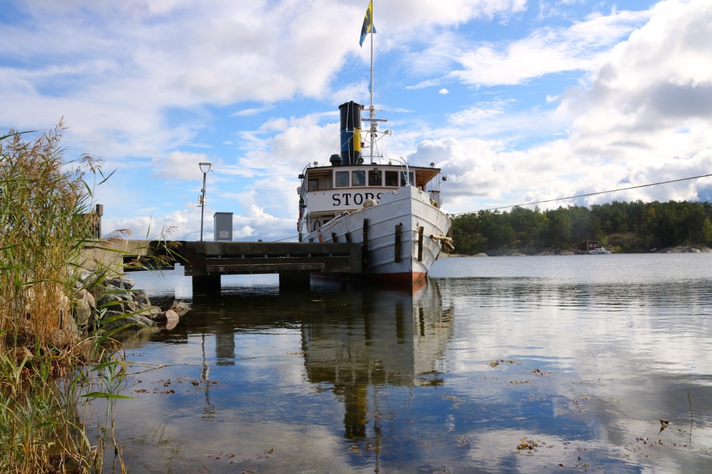 Söndagen den 18 september fick starta med lite sovmorgon. Så först klockan 13:00 påbörjade jag båtåkandet denna dag. Ångfartyget Norrskär ifrån Stockholm ut till Grinda och sedan in till en ö nära Vaxholm för båtbyte. Det blir lite speciallösningar sista trafikdagen när man vill hinna med flera båtar.