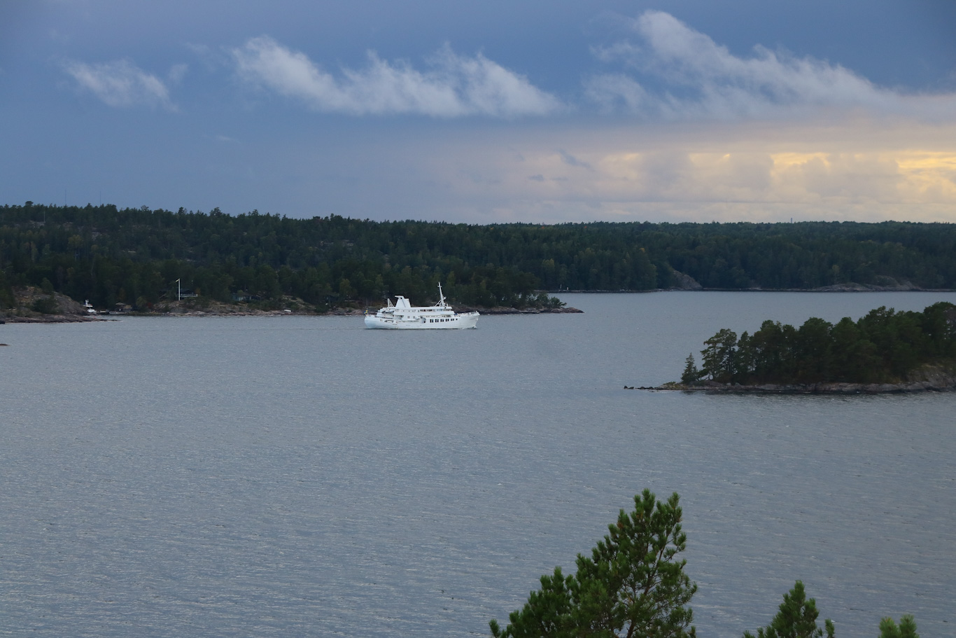En sista glimt av Amorella som här går ut genom Stockholms skärgård för allra sista gången, sista passagen genom genom Furusundsleden. När inlägget publiceras så har hon nått sina nya farvatten i Medelhavet.