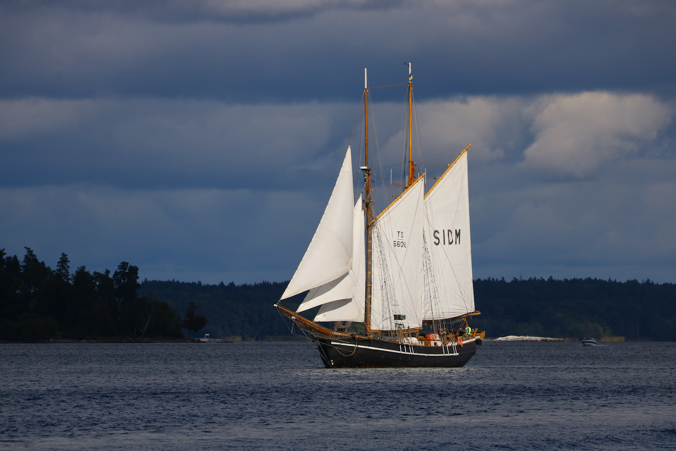Så möttes Västan och Norrskär ute på Höggarnsfjärden. Västan på väg in mot Granholmen därifrån två resenärer/båtdiggare skulle åka med.