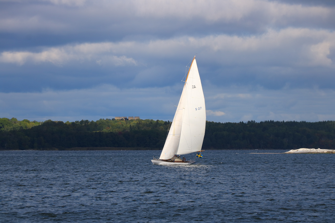 Lite mer segling. I bakgrunden syns Bogesunds slott på det vida Bogesundslandet.