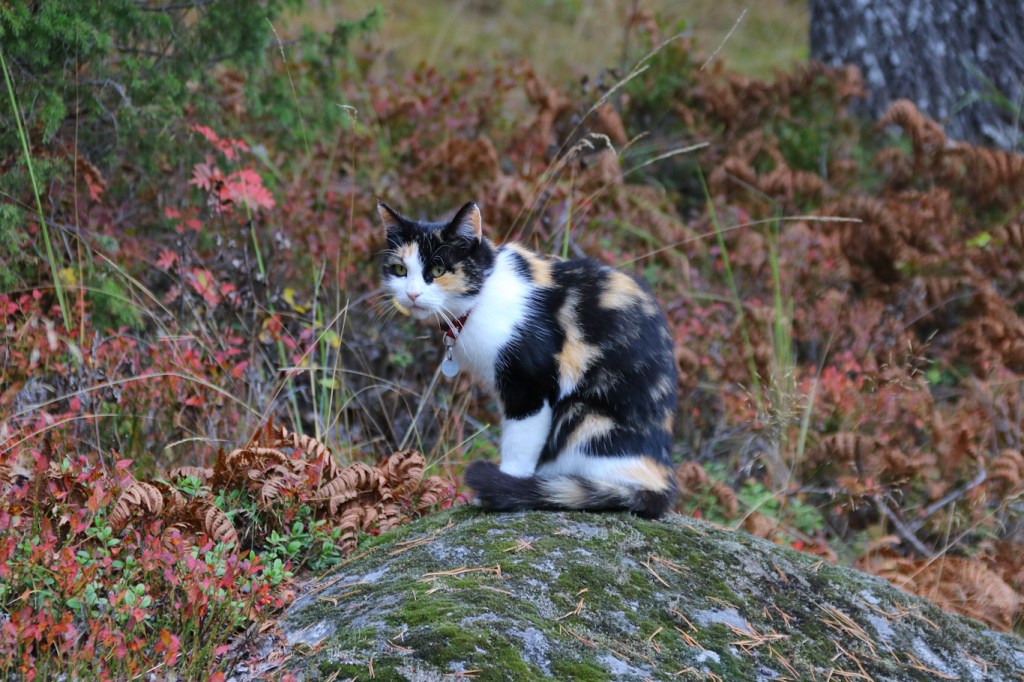 Det blev alltså ett nytt besök på Grinda under söndagen, med en kortare promenad bort mot värdshuset. Längs vägen sågs denna fina katt i de begynnande höstmiljöerna.