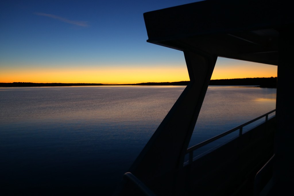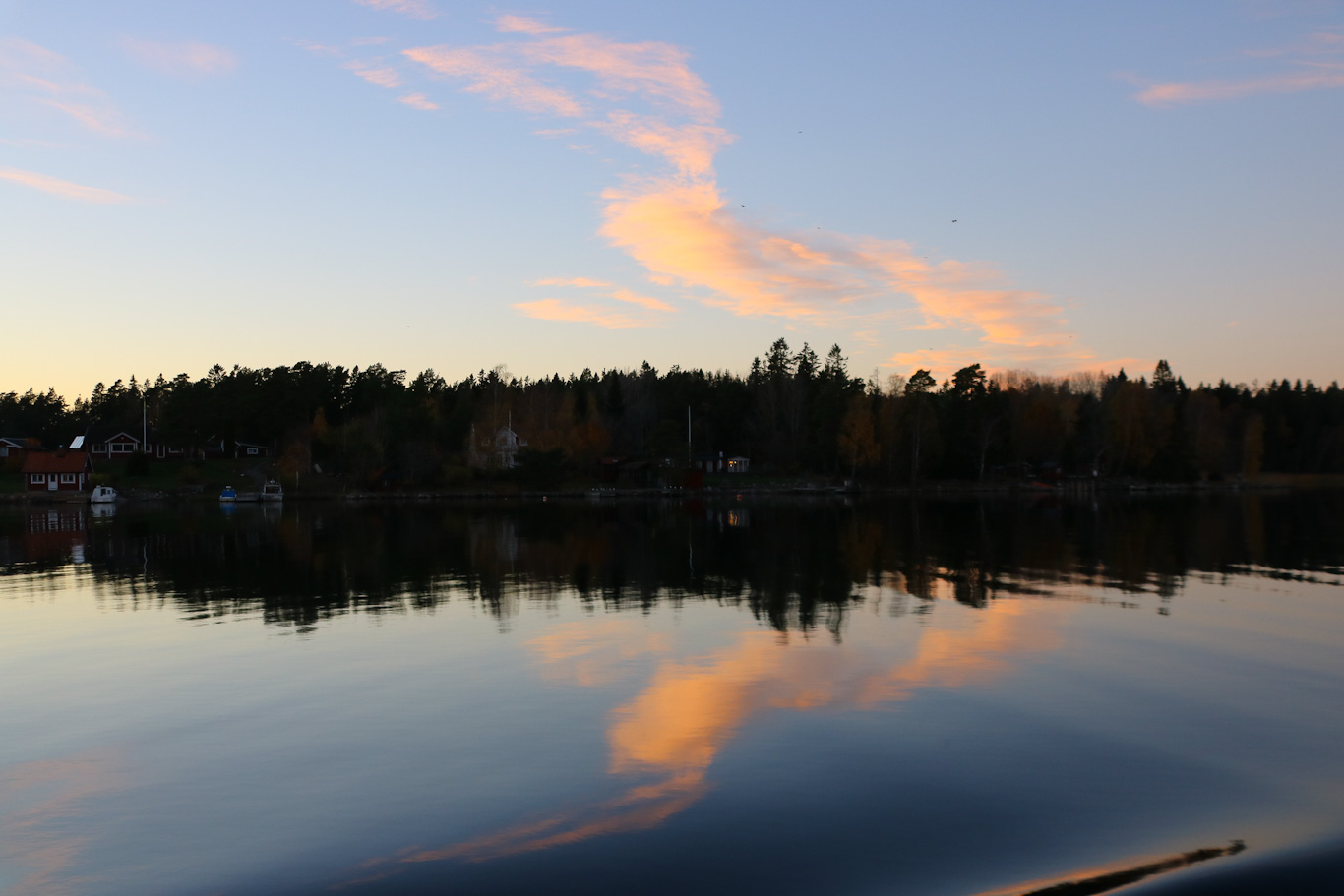 Efter att ha bevittnat en magisk skymning i Blidösundet och över Vamban, fjärden mellan södra Blidö, Yxlan och Själbottna, så gick man in och tillbringade resten av resan i trevligt sällskap av mina fyra medresenärer. Dessutom intogs god mat från kafeterian. Ankomst till Stockholm var sedan 19:15, och i vanlig ordning först anlöp vid Gamla stan (pontonbrygga som i tidtabell kallas för Slussen) och Strömkajen (nedanför Grand Hôtel). Strömkajen kan också kallas för mitt andra hem…