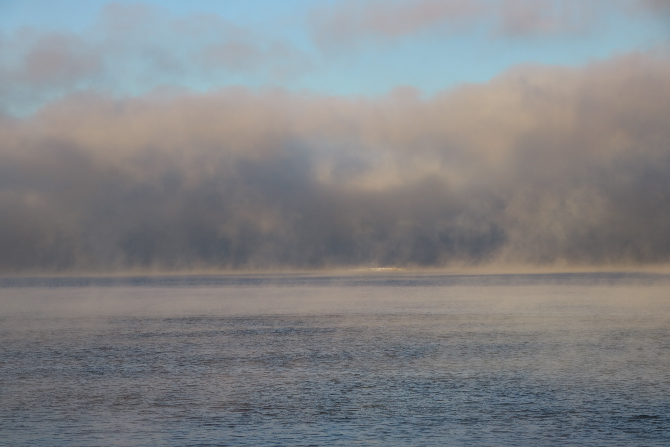 Mot Östra Saxarfjärden såg det lite dramatiskt ut med det stora området med dimma.