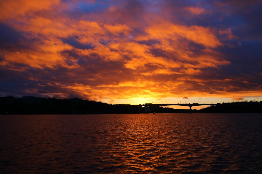 Nu blev det något helt annat än grått – för vilken solnedgång över Gröndal och Essingeleden som jag fick uppleva eftermiddagen den 18 januari ifrån pendelbåten Rex på väg till Tappström, Ekerö. Jag steg av vid Tappström och gick upp till Ekerö centrum och köpte en kondisbit på Ekerö bageri innan jag for hem medelst buss. Kondisbiten var förstås en dammsugare, Ekerö bageri har en väldigt god sådan. Och ni som känner mig väl vet att just den kondisbiten är något som tilltalar mig. 😉