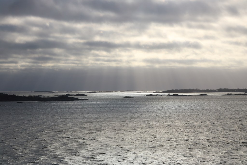 Grått och åter grått när det blev en resa ut till Husarö den 5 januari. Från Boda på Värmdö blev det båten Söderarm som på bilden strax ska lägga till just vid den bryggan. Fyren på ön till vänster i bild står på Kalvön, således är det alltså Kalvö fyr. Denna fyr ligger längs en av stora farlederna till/från Stockholm.