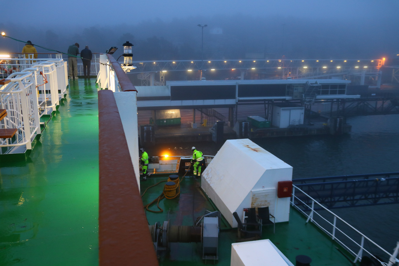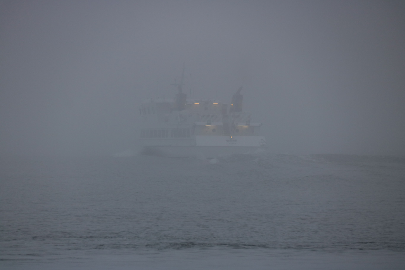 Dimmigt när jag åkte ut med pendelbåten till Gåshaga…