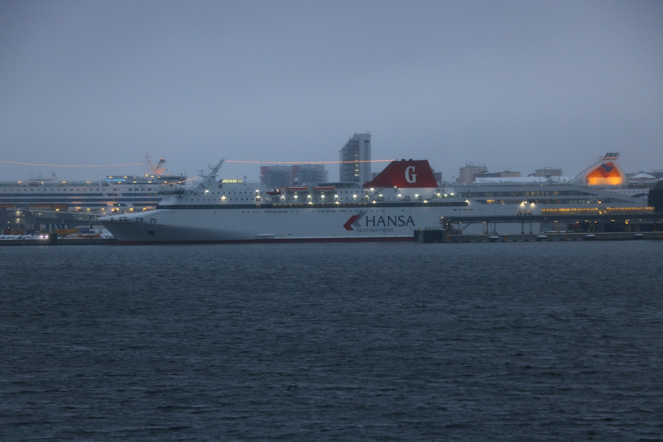 Hansa Destination i Värtahamnen, ja det här var ett försök till trafik från Nynäshamn till Rostock som inte kom att utfalla så pass väl att linjen fortsätter sin trafik in på det nya året. Drotten ligger tills vidare upplagd i Värtahamnen i väntan på nästa uppdrag. Bild tagen 7 januari.