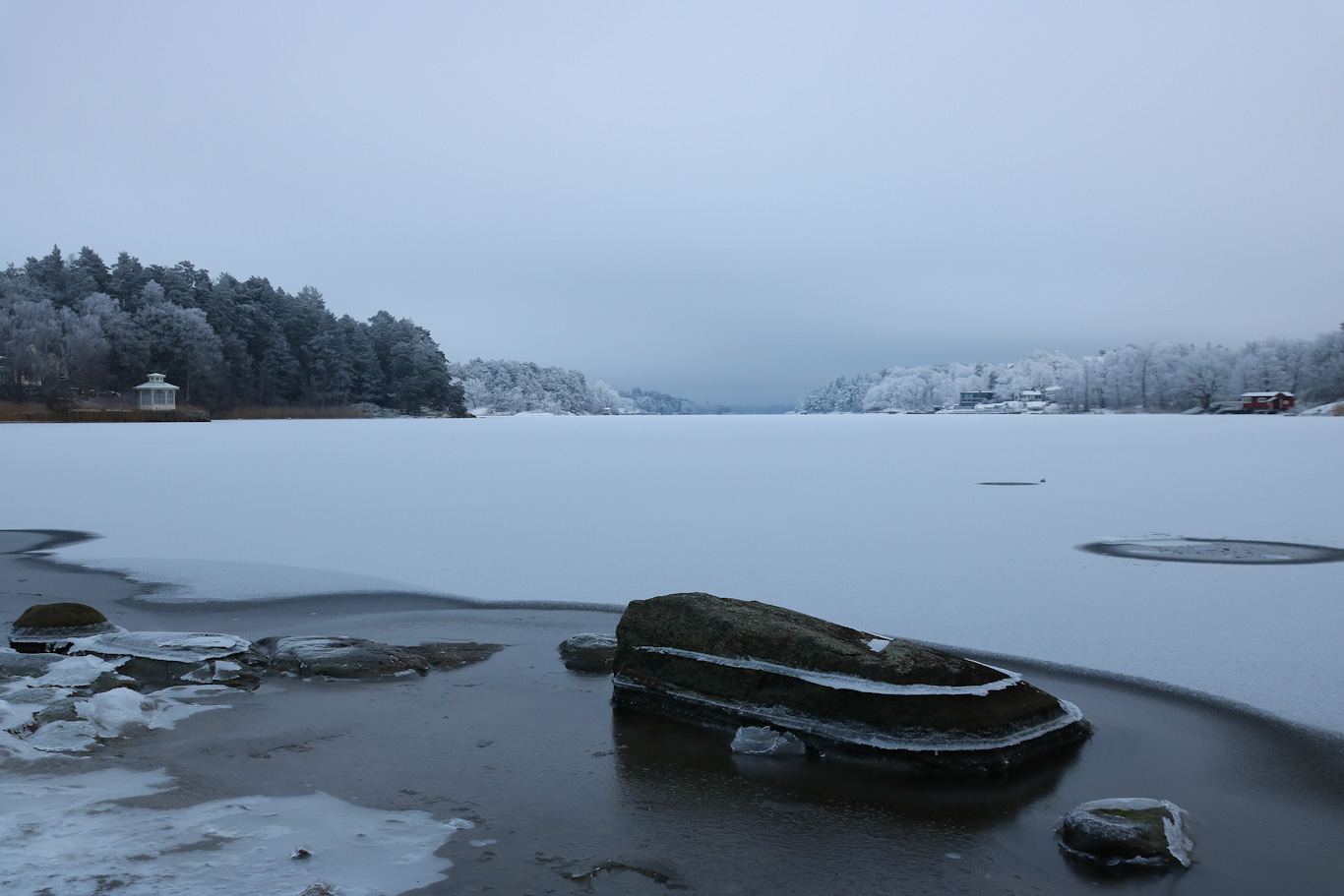 Ut mot Blockhusudden så kunde vissa områden med snöbeklädda grenar skådas.
