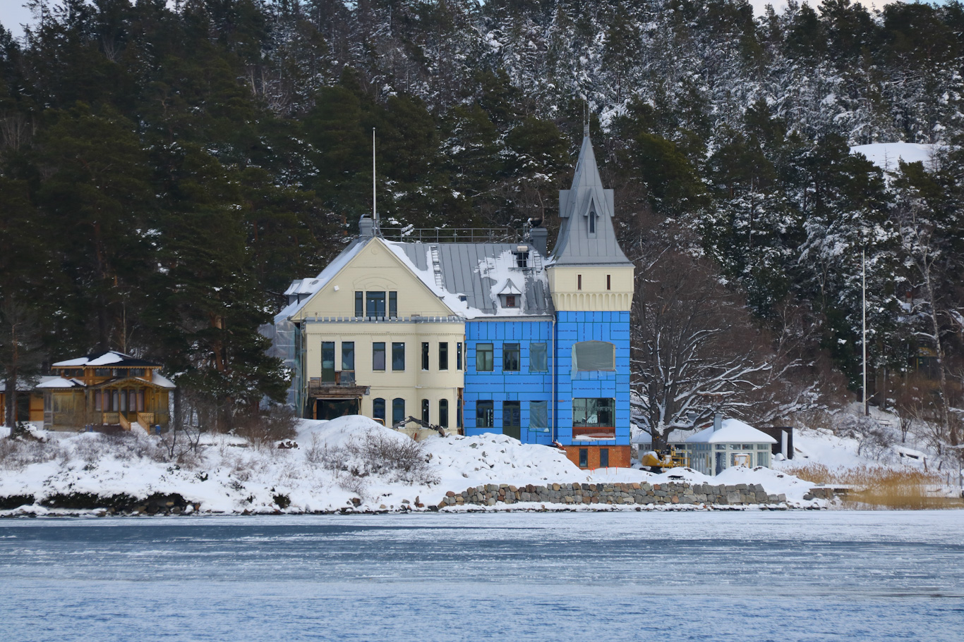 Inne i viken mellan Tynningö och Vasholmen kan på Tynningösidan denna ståtliga villa skådas. Villa Björkudden som en gång i tiden har stått på Djurgården.