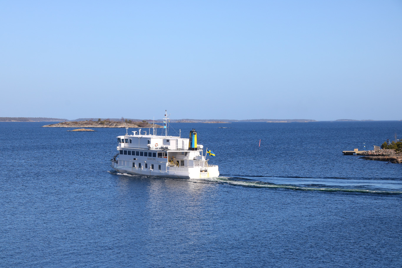 Jag påbörjade min resa vid Slussen i Stockholm med att åka 434 ut till Stavsnäs, den busslinjen fortsätter i sin tur ut till Vindö. Avgångstid 09:40 med m/s Waxholm II, men något försenad avgång på grund av godshantering.