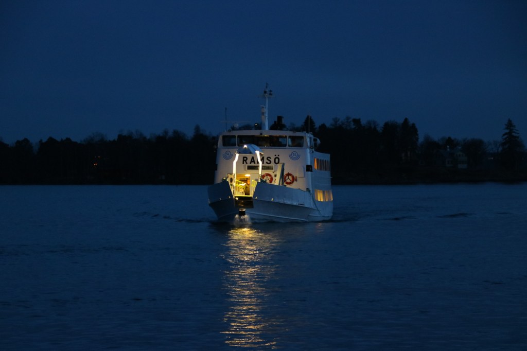 M/S Ramsö på väg in till Vaxholm i skymningen. Sista eftermiddagsturen från Stockholm under dessa veckor hon fått vara i trafik, under fredagen sedan tog en snabbåt vid trafiken från senare delen av dagen, och från lördagen 25 mars körs isfri turlista. Det gäller alltså SL:s pendelbåtslinje 83 – som jag hade med i mitt senaste blogginlägg som handlade om en intur från Vaxholm.