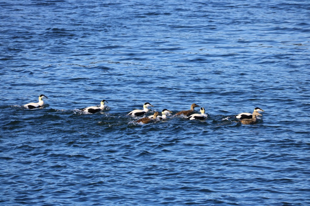 Inget våraktigt blogginlägg från skärgården utan dessa ejdrar. De i svart-vit dress är gudingarna (hannar) och de bruna är ådor (honor).