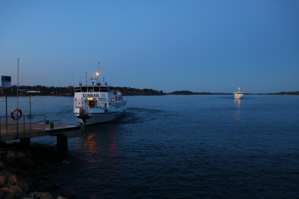 M/S Söderarm gör en gir för att åka mot Gåshaga brygga där ett par mycket sent fällt upp semaforen för färd in mot Stockholm. En stund innan hade dessutom ett utländskt par missat att fälla upp semaforen för m/s Sunnan på SL-pendelbåtslinje 83 som helt sonika passerade bryggan. Turisterna till Vaxholm fick åka med m/s Sjöbris likt jag och min vän och de fick då betala dubbla biljettsumman mot SL-båten.