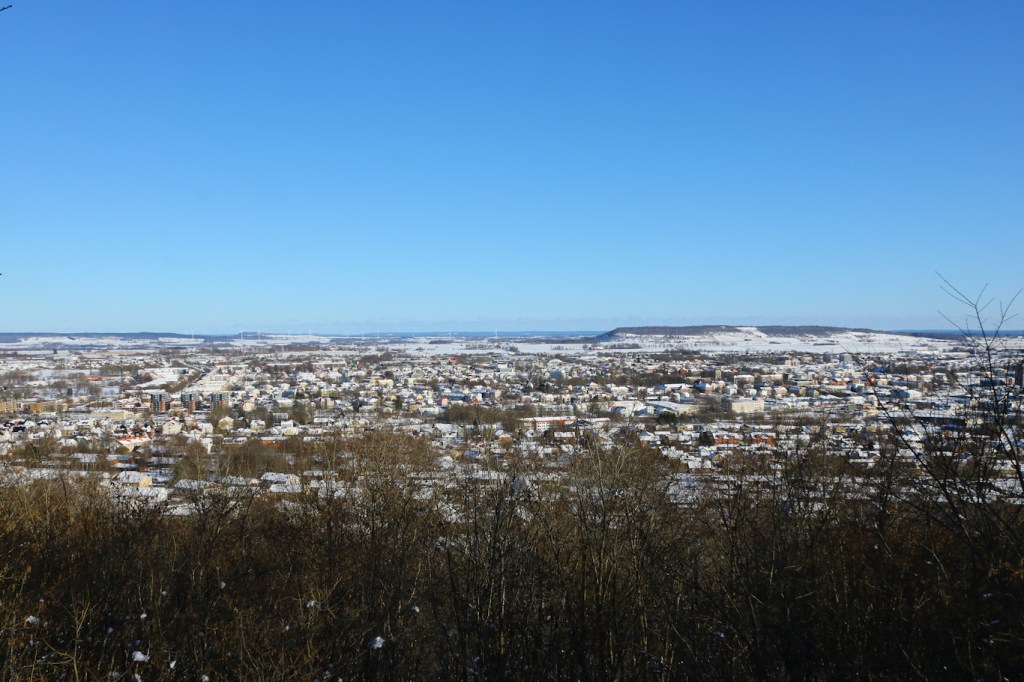 Traneberg eller? Nej det är Brunnhemsberget till höger som tornar upp sig, och längre bort till vänster i bild Billingen.