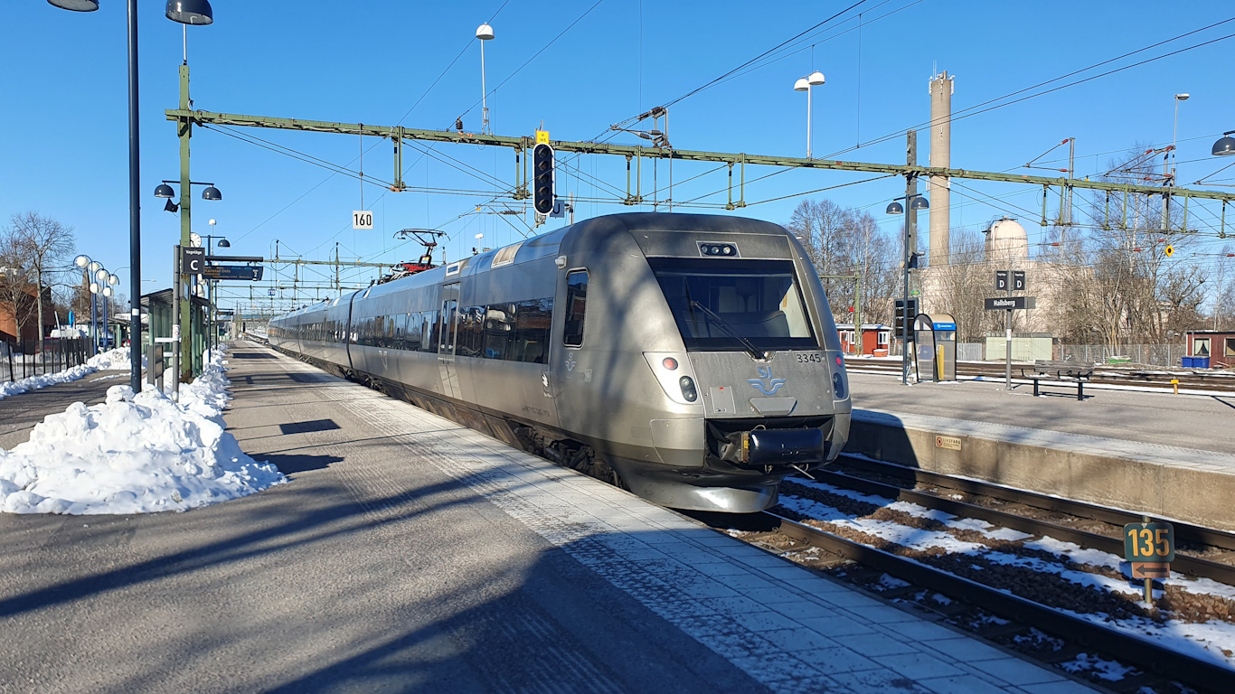 Resan startade för min del med att åka SJ Snabbtåg av modell SJ 3000 till Hallsberg, Närke. Där kom jag att ha en bytestid på en halvtimme, den blev dock kortare på grund av ett stopp vid Flemingsberg på ca 10 minuter. Men huvudsaken var att jag hann med bytet till regionaltåget från Hallsberg som jag sedan fortsatte ner till Falköping i Västergötland med.