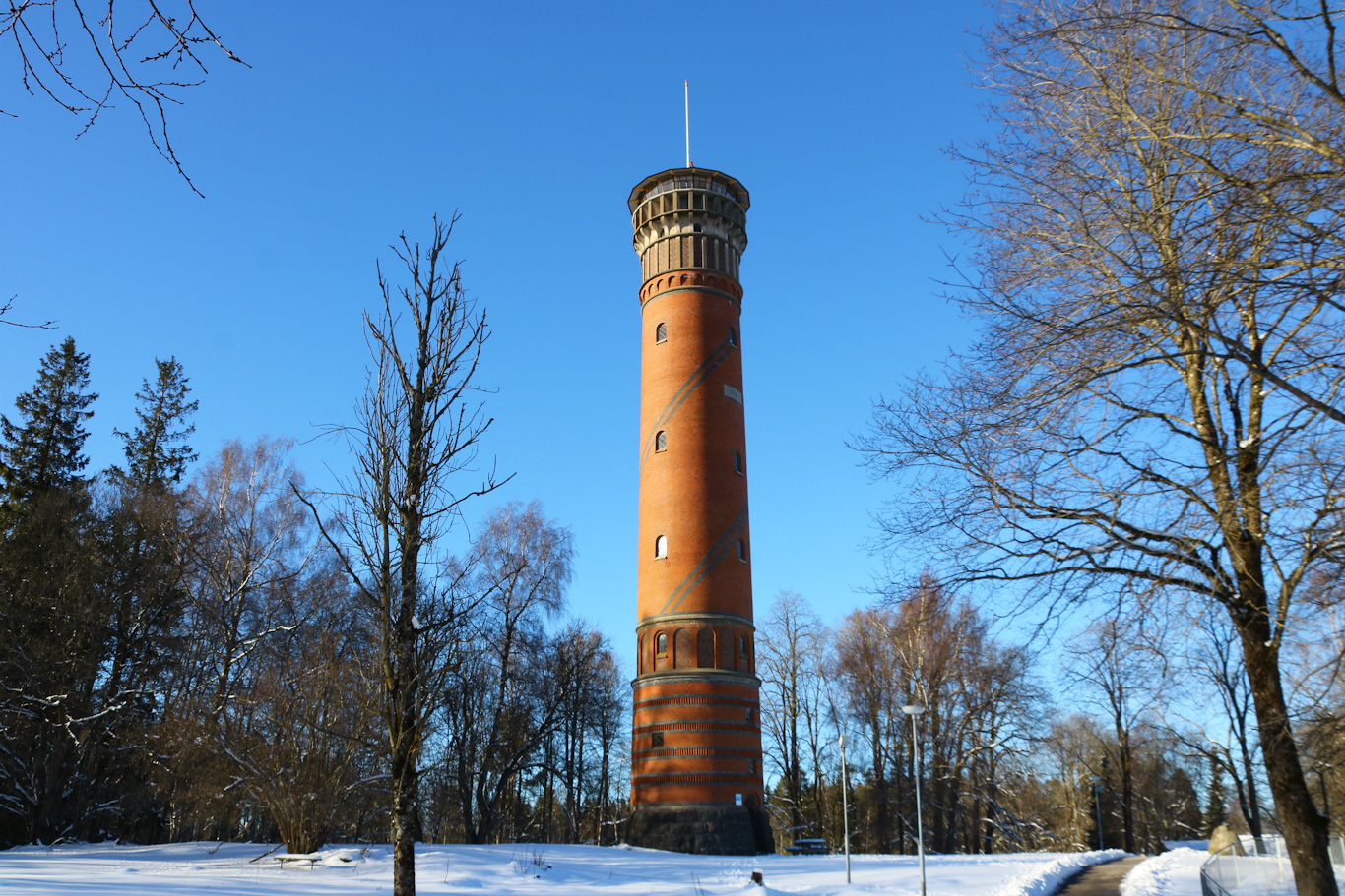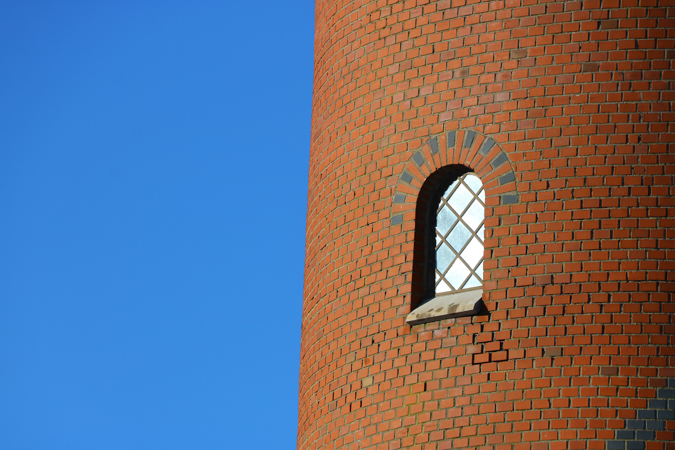 Snyggt tegeltorn som byggdes i början av 1900-talet och vars funktion just var som ett tillhåll för att skåda utsikt.
