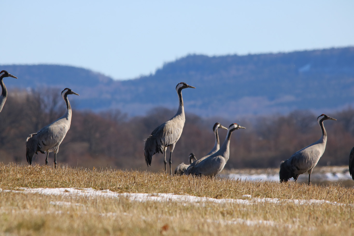 Även om vintern fortfarande rådde så nalkades våren absolut och ett tecken på det var självfallet tranornas uppenbarelse. Denna grupp kom söderifrån i riktning mot den stora rastplatsen för tranor nämligen Hornborgasjön, belägen mellan Falköping och Skara.
