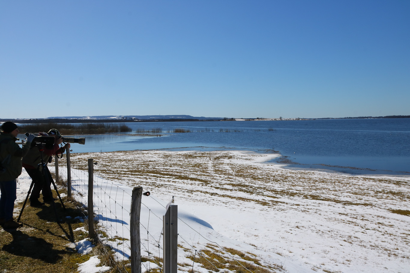 Solglitter och is. Efter intagandet av en lunchmacka på kaféet intill Naturum, där det var en bra skara folk för övrigt, så åkte vi vidare till just Skara.
