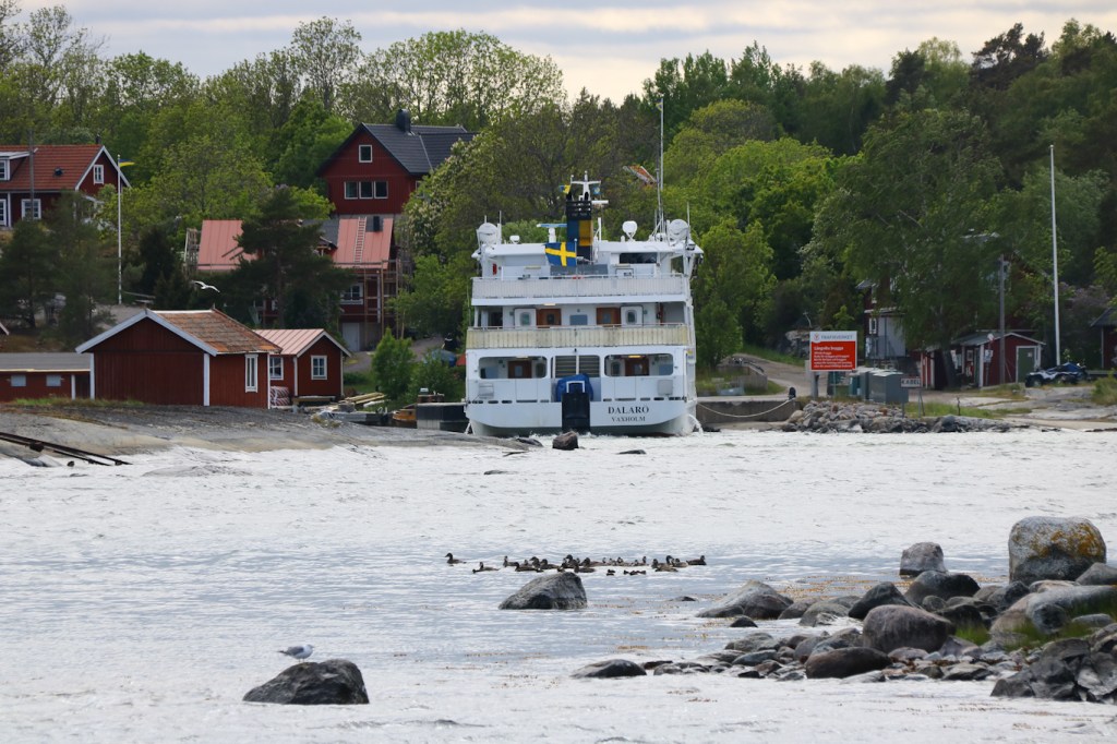 Första anlöpet på resan blev alltså Långvik på Möja. Där inne låg m/s Dalarö förtöjd för lite paus mellan turer. Notera gruppen ejdrar vid inloppet till bryggan.