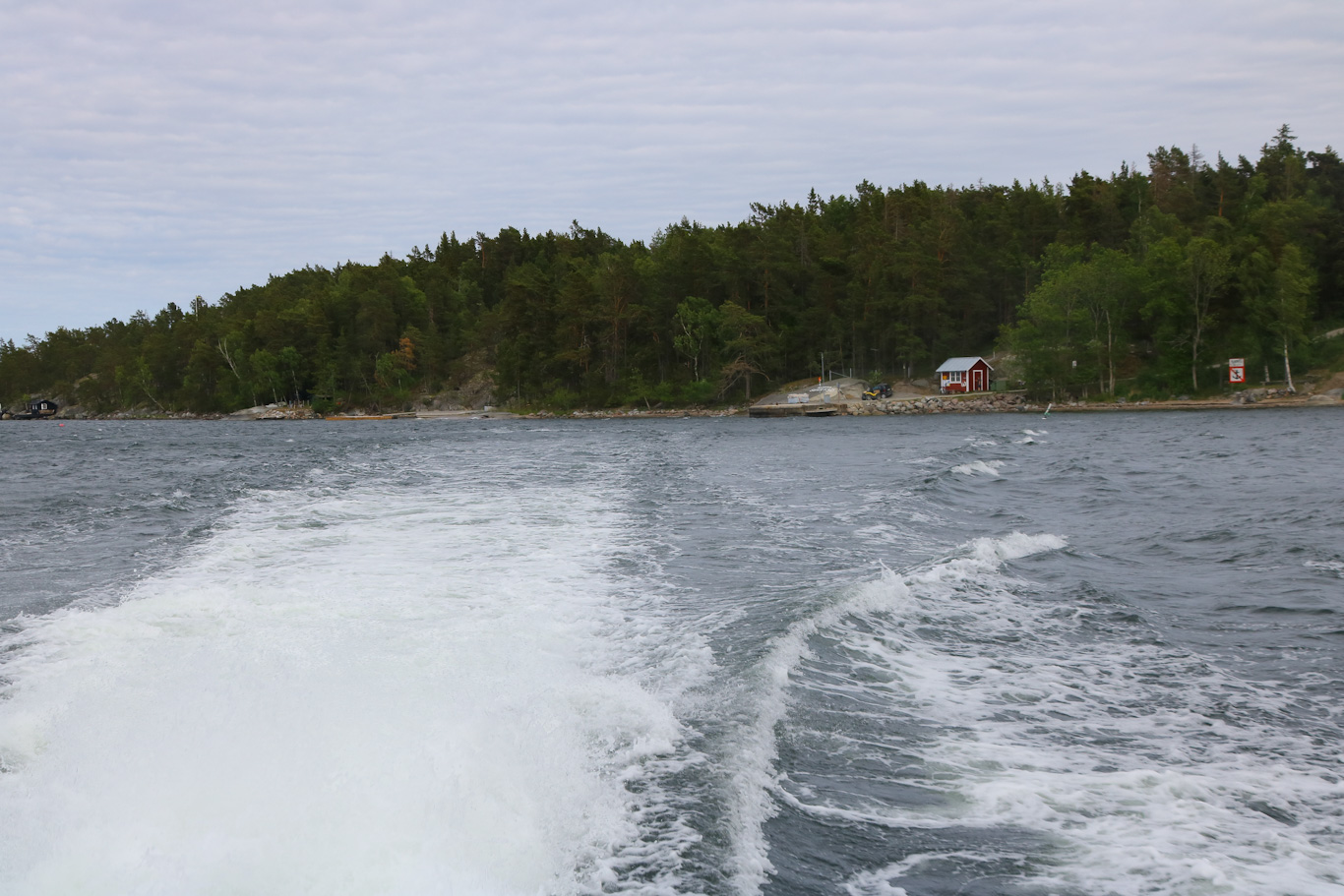 Med vattenjetens kraft tog vi oss norrut på Kanholmsfjärden och sedan Möja Söderfjärd, Bergbofjärden och Norrfjärden innan man i Tornösund gick in mot Långvik på norra Möja.