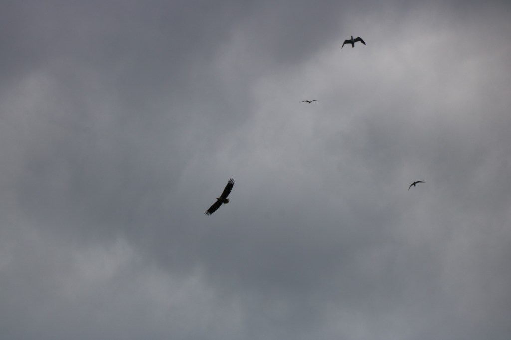 Över Värmdösidan av Vindö strömmar så blev denna havsörn jagad av några andra fåglar.