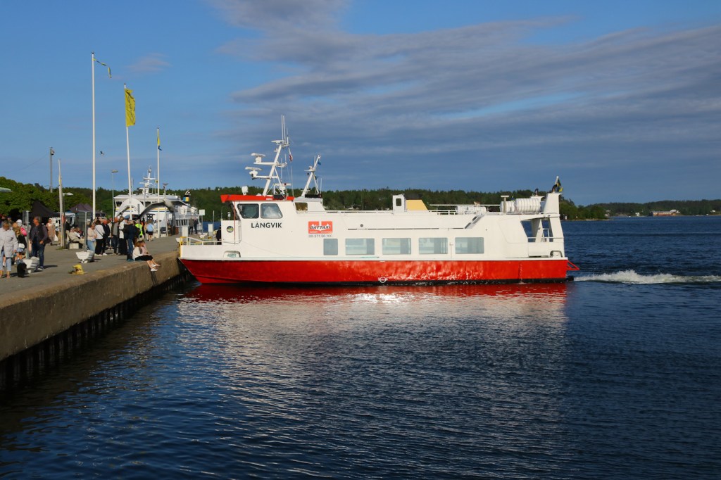 Men för att återgå till Skärgårdsbåtens dag, denna behöver inte bara innehålla klassiska fartyg. Har genom åren varit en del modernare inslag också. Förra året deltog i egen regi Stavsnäs Båttaxi med möjlighet för skärgårdsbor att delta under aftonen i Vaxholm. Då körde man en nyinförskaffad katamaran från Norge, m/s Syreni, och gav även Vaxholmsbor möjligheten att följa med och möta kortegen från Stockholm. I år var fartyget m/s Långvik, byggd 1990 på ett varv i Ångermanland och hemmahörande på Ornö under dryga 25 år. Såldes 2018 till Stavsnäs Båttaxi och kör i dess kommersiella trafik med charter, tematurer och även reguljära turer.