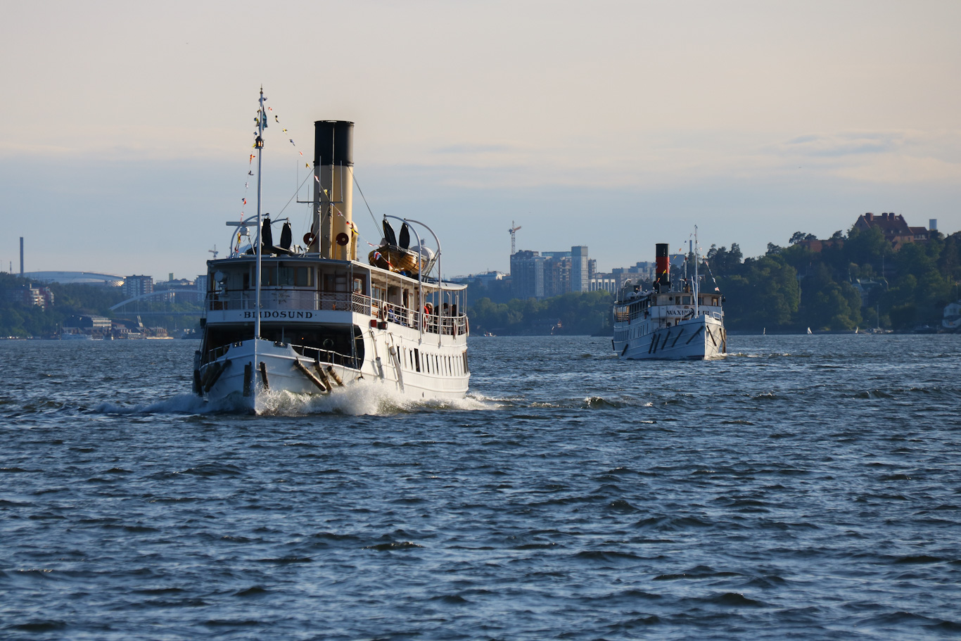 Rätt som det är så har klockan slagit 21:30 och då lämnar ångfartygen Vaxholm för återfärd mot Stockholm. Storskär och Norrskär har kajplats vid Strömkajen nedanför Nationalmuseum, medan Blidösund har sin ordinarie kajplats vid Skeppsbron vid Gustaf III:s staty. De som har hand om drift och bemanning på Storskär och Norrskär – det är samma rederi som äger Blidösund dvs Blidösundsbolaget/Transdev. Multinationella bolaget Transdev köpte Blidösundsbolaget i slutet av 2017.