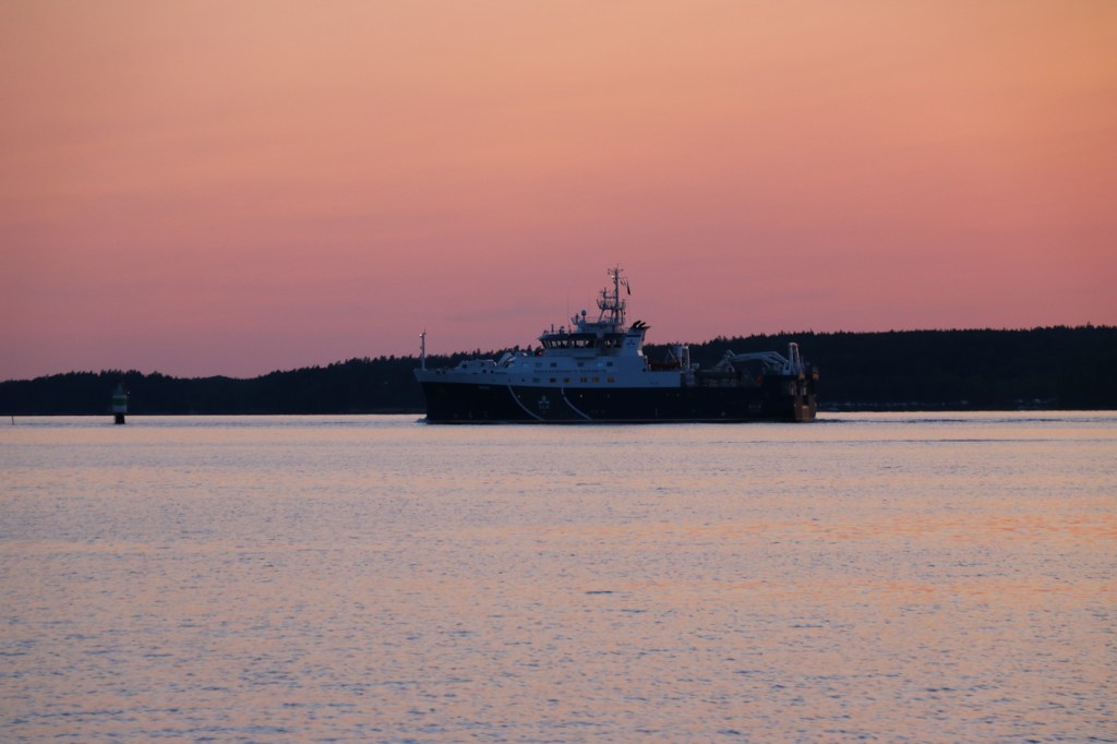 Sveriges Lantbruksuniversitets forskningsfartyg Svea var på ingående mot Stockholm denna sena afton.
