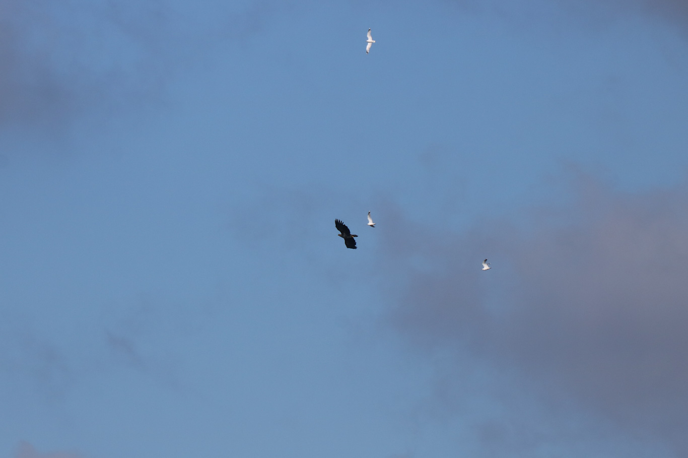 Mobbning där ovan, alltså fiskmåsarna som vill störa havsörnen.
