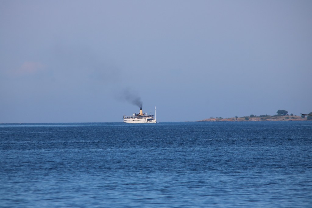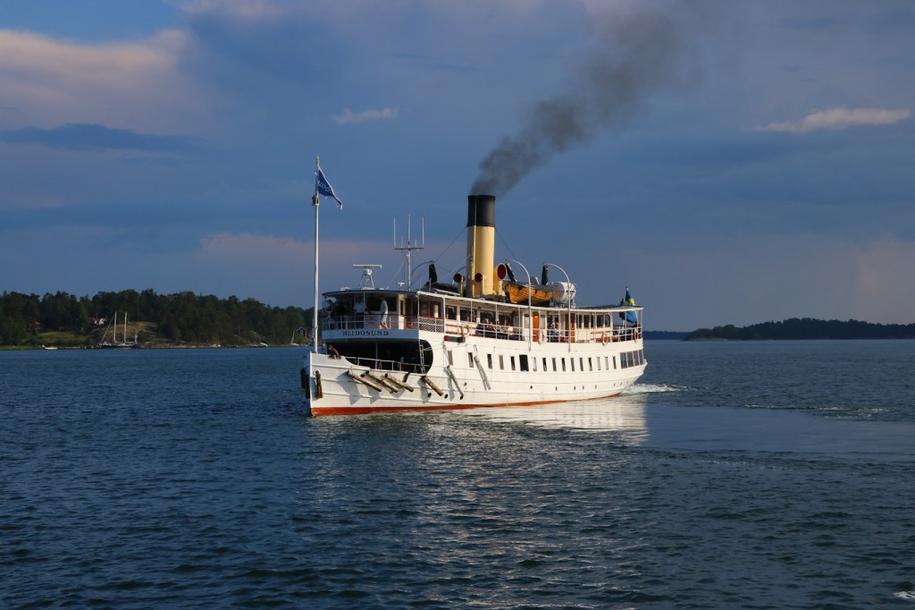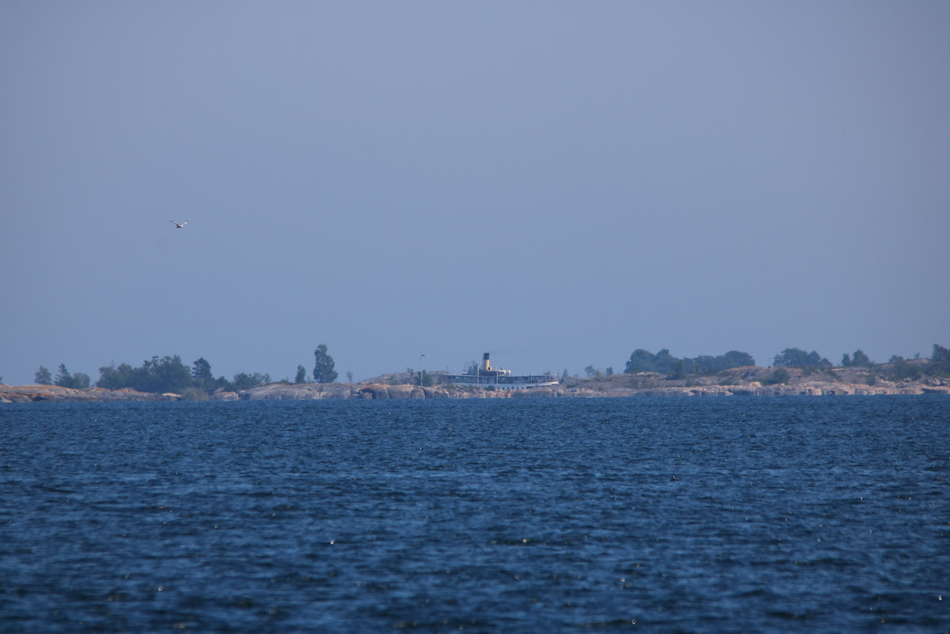 Ute i stora farleden mellan skärgårdarna Norrarm och Söderarm kom s/s Blidösund på väg söderut.