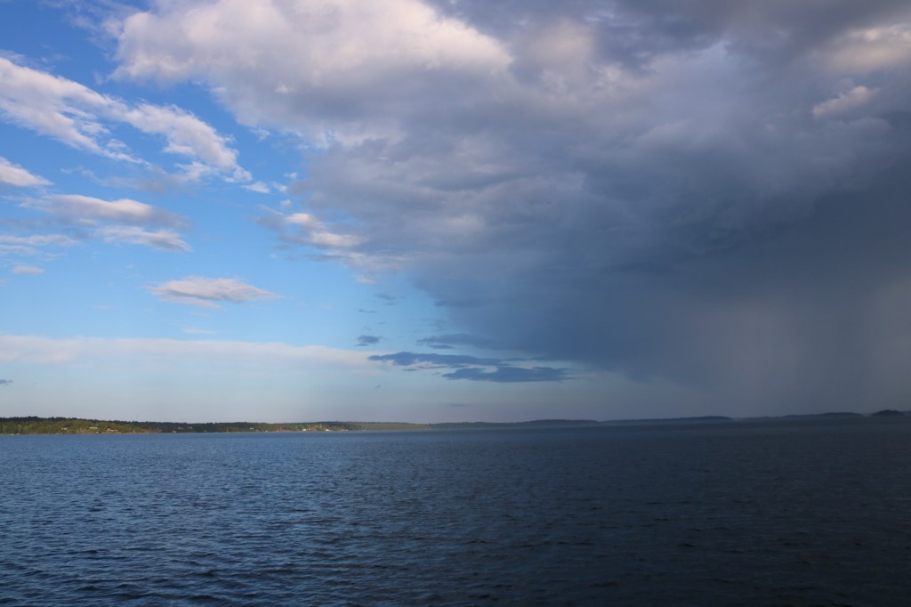 Här var det varierat väder över södra Ljusterö och Östra Saxarfjärden.