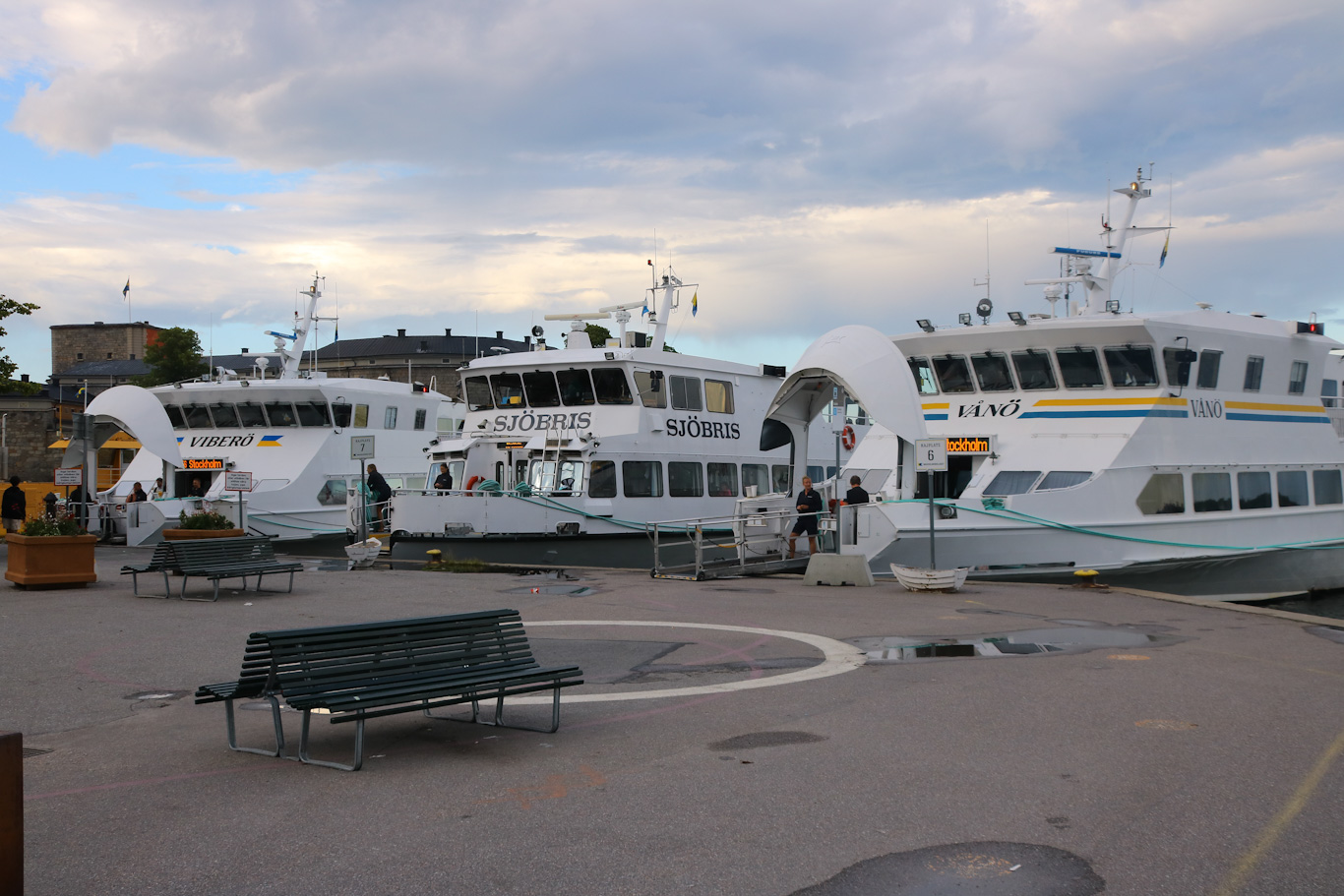Ankomst Vaxholm 19:45 och där kom det att vara trippel avgång mot Strömkajen. På m/s Sjöbris hade jag mött upp en vän så vi gick av i Vaxholm för att fortsätta kvällen med båtåkande.
