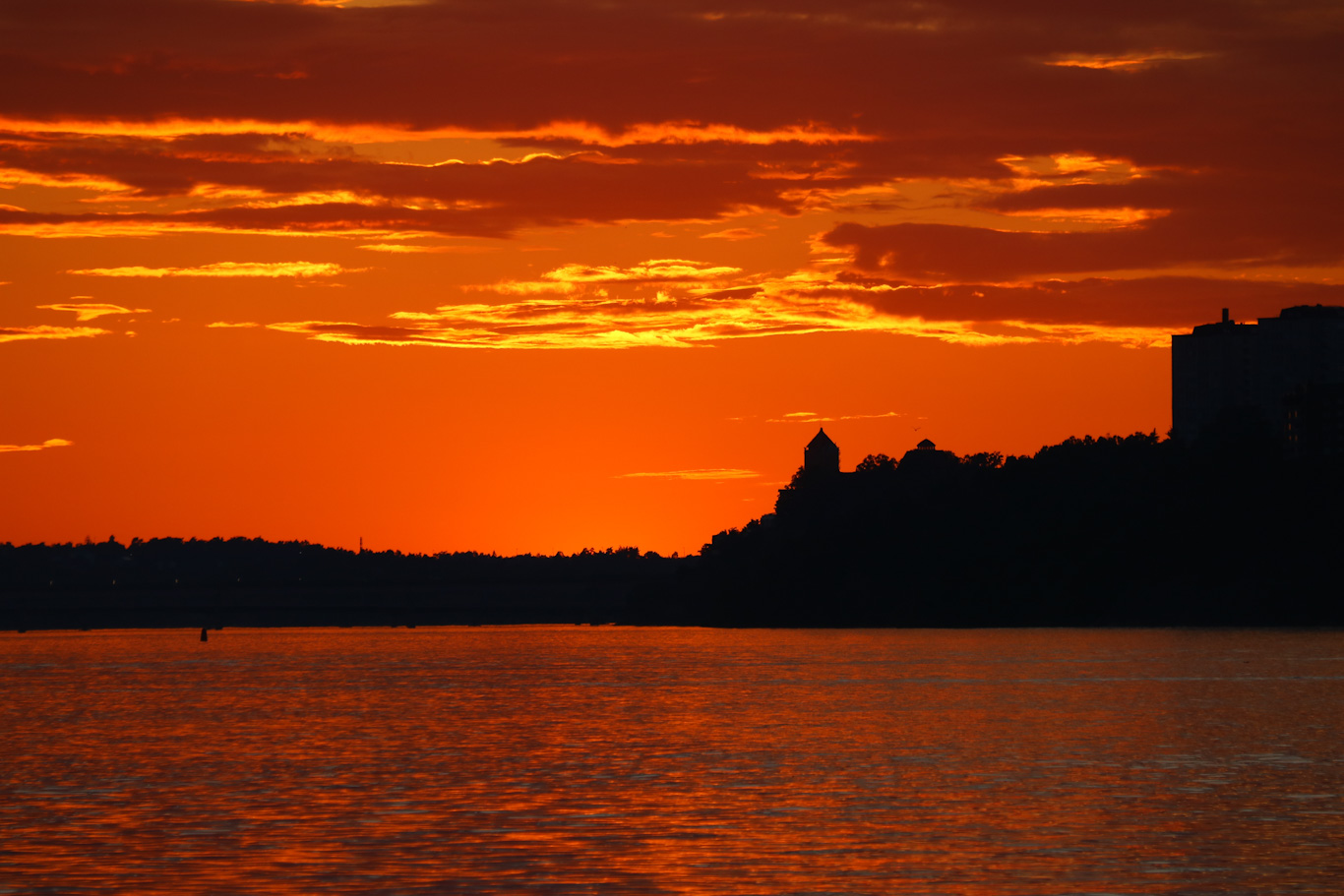 Makalöst vacker kväll. Här tornar några av stadens kyrkor upp sig i fonden.