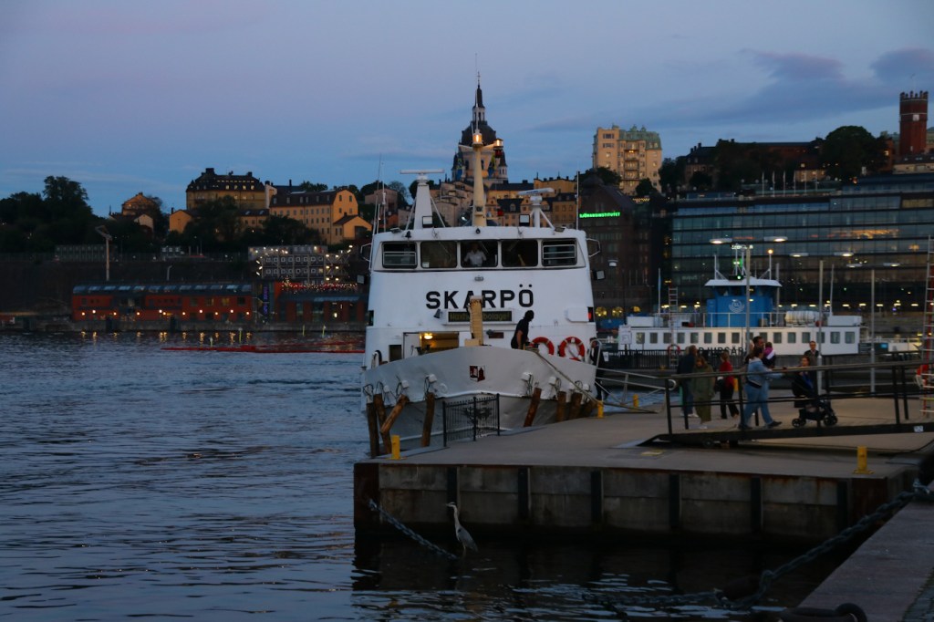 Så fick vi gå av vid Slussen som det kallas – eller som jag säger Skeppsbron, Gamla stan. Ni ser ju i bilden att Södermalm ligger en bit bort…Normalt gör inte båtar med bogtillägg tillägg här, är en flytponton bryggan. Men en avslutningsvis mycket trevlig tur även med m/s Skarpö som ersatt ett annat av Waxholmsbolagets fartyg de första veckorna under sommarturlistan. Ja även systerfartyget m/s Ramsö var i trafik under några enskilda dagar.