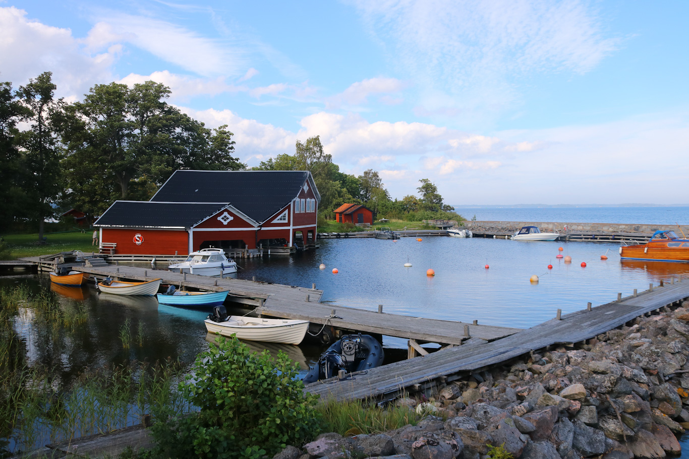 En stunds promenad hann jag med i Östernäs med omgivning. Ligger inte särskilt långt från Riddersholm och dess naturreservat, men dit hann jag ändå inte gå in till. Men här på bilden kom däremot m/s Skraken på väg in till just Östernäs. I närheten av bryggan, ja några hundratals meter ändock, så finns några stora parkeringsplatser – så bland fritidsfolk och fastboende på öarna utanför så finns alltså möjligheten att ställa bilen på Rådmansö. Och god vägförbindelse är det till Östernäs ty Östernäs bryggväg inte är så lång till/från motorvägen E18 som ju sträcker sig ut till Kapellskär ca två mil från Norrtälje.
